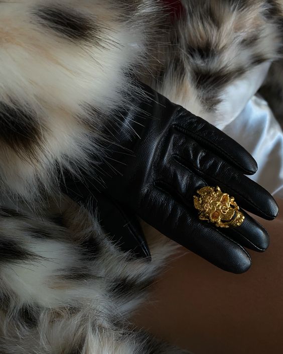 fur + leather gloves
