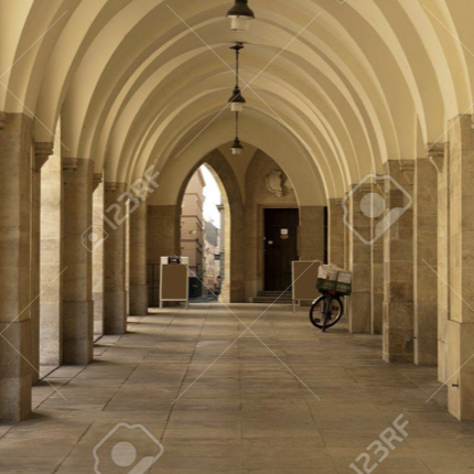 Old European Green Park with white old statues, french style